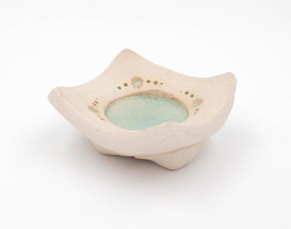 Feuerfest gebrannt, unter Verwendung einer besonderen Glasur, die schöne Farbakzente entstehen lässt.