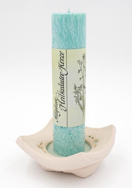 Auf dem dritten Bild bekommen Sie eine Vorstellung davon wie die Allgäuer Heilkräuter-Kerze auf dem Kerzenständer aussieht.