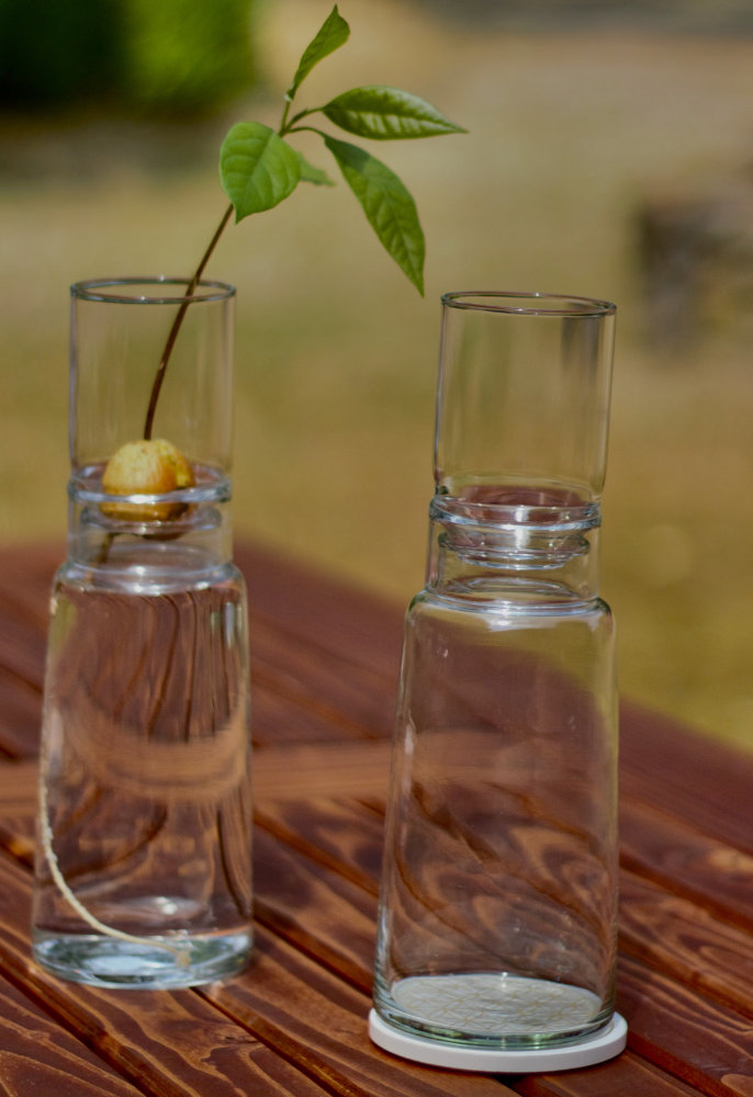 - einfache Handhabung: Durch die Zweiteilung des Glases ist das Nachgießen und Wechseln des Wassers besonders einfach.