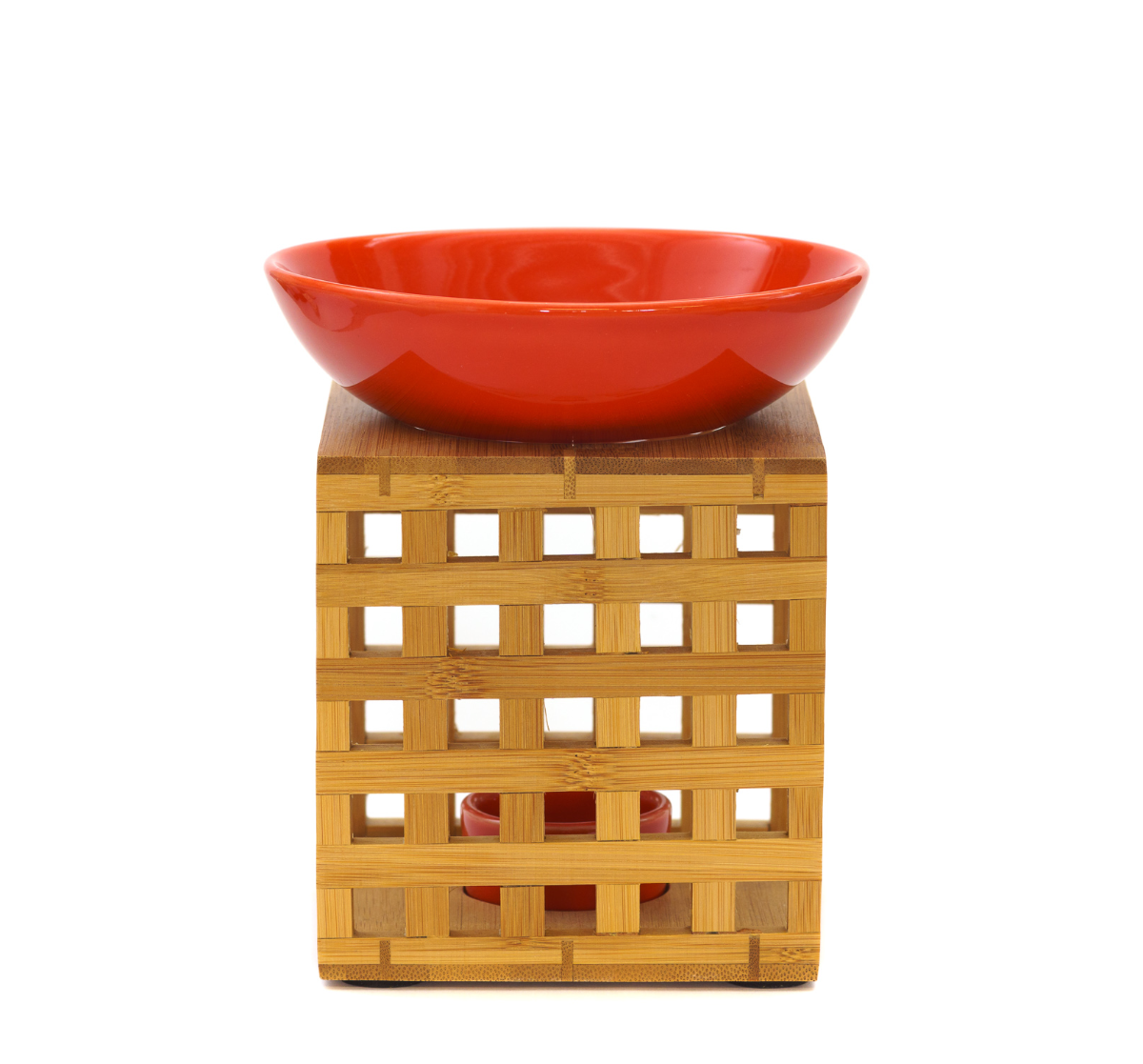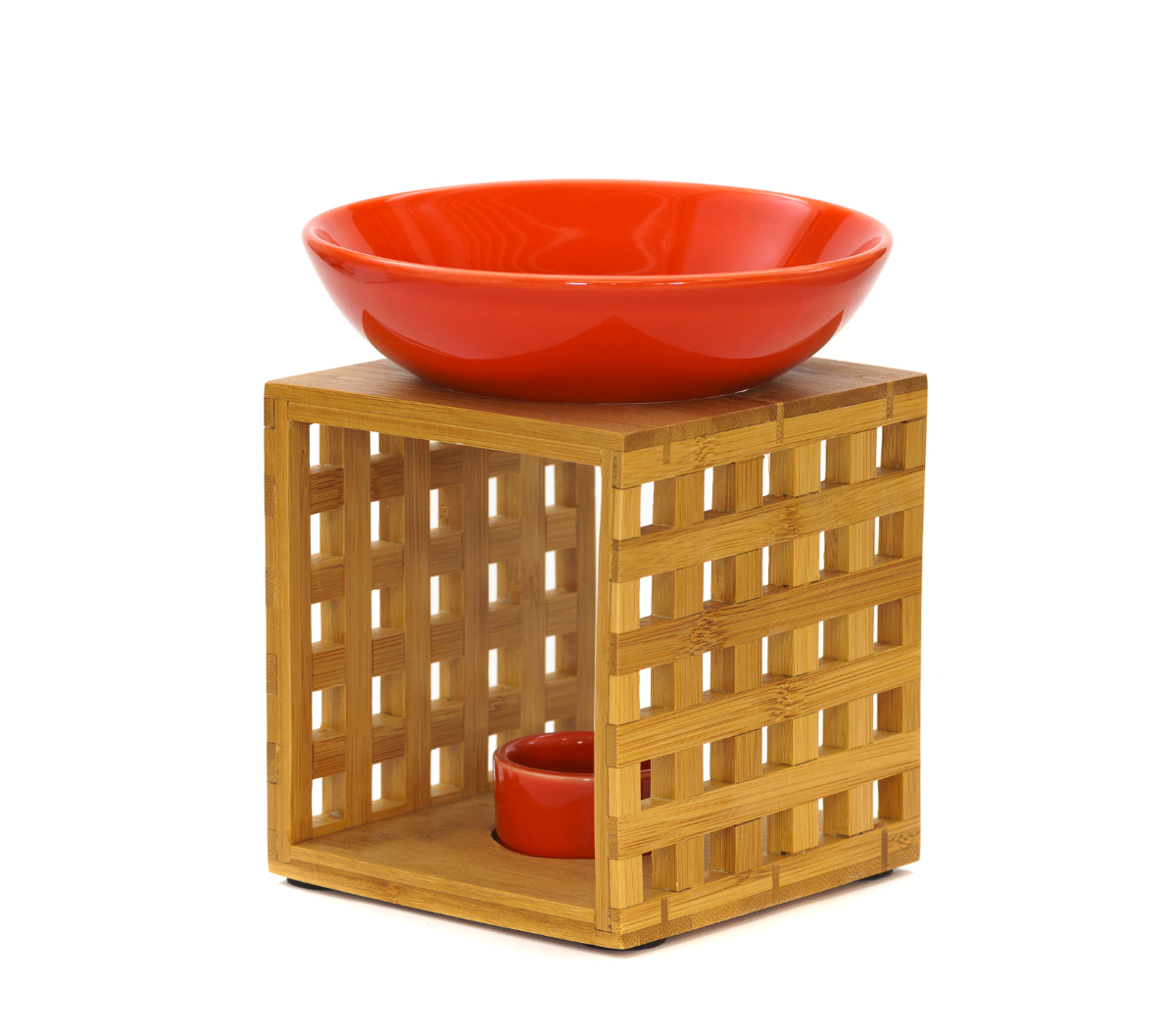 Aromalampe aus Bambus mit abnehmbarer Keramikschale in rot. Höhe: 15 cm Durchmesser: 11,5 cm. Material: Bambus/Keramik Farbe Schale: rot