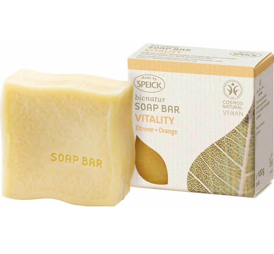 Milde und ergiebige Seife aus reinen Pflanzenölen, veredelt mit einer wertvollen Duftkomposition aus reinen ätherischen Ölen. Durch ihren hohen Anteil an pflanzlicher Rückfettungscreme ist die Bionatur Soap Bar Vitality besonders hautmild und pflegt die Haut weich und geschmeidig.