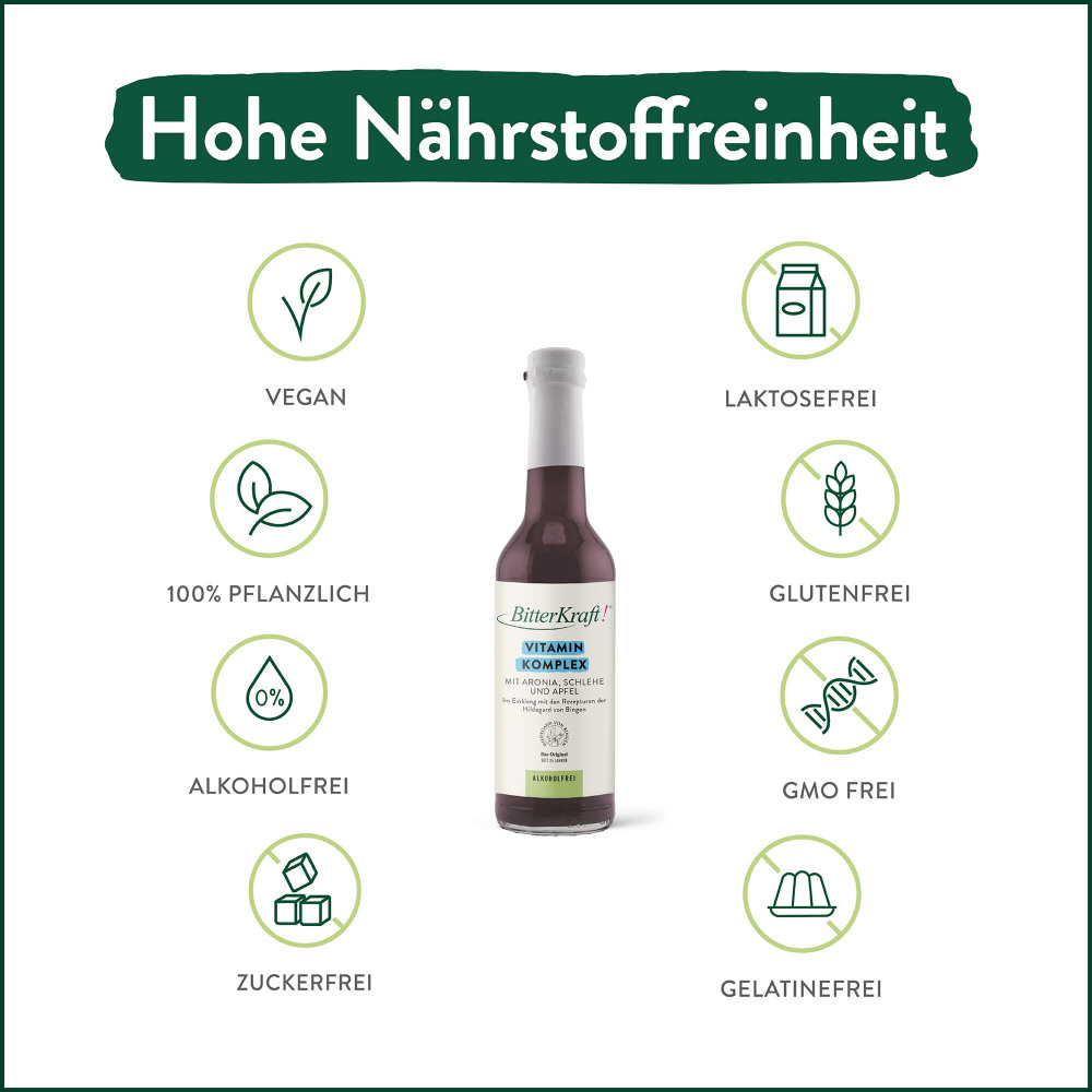 Aroniasaft 37%*, Schehensaft 35%*, Apfelsaft 23%*, Himbeersaft 3%, Auszüge aus Pfeffer*, Wasser.