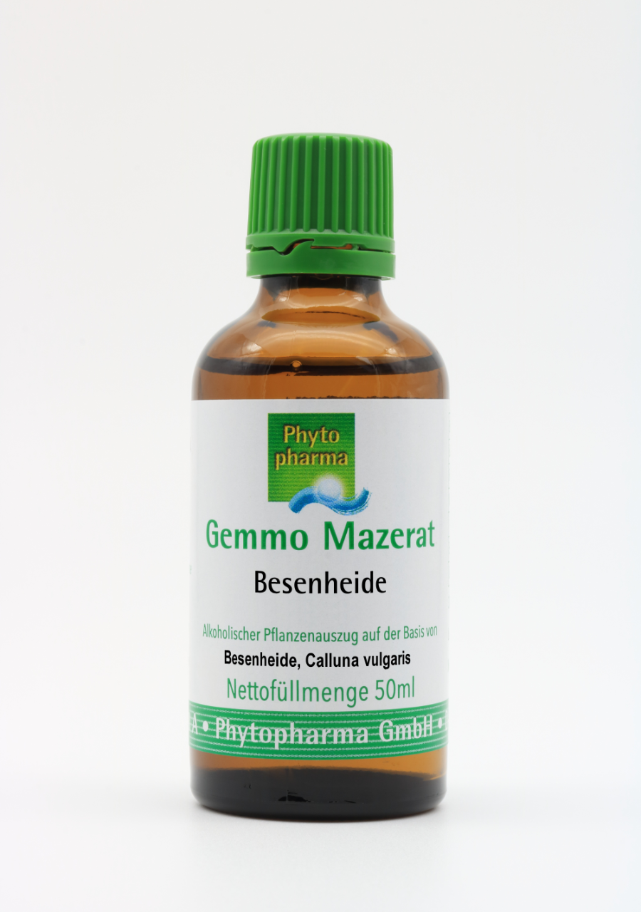 Die von Phytopharma gelieferte Zubereitung Gemmo Mazerat Besenheide (Calluna vulgaris) ist ausschließlich dazu bestimmt, nach komplementärmedizinischen Methoden angewendet zu werden.