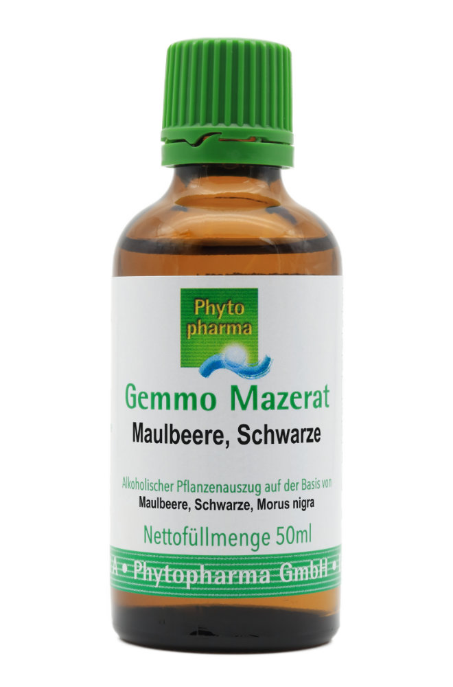 Die von Phytopharma gelieferte Zubereitung Gemmo Mazerat Maulbeere,Schwarze (Morus nigra) ist ausschließlich dazu bestimmt, nach komplementärmedizinischen Methoden angewendet zu werden.