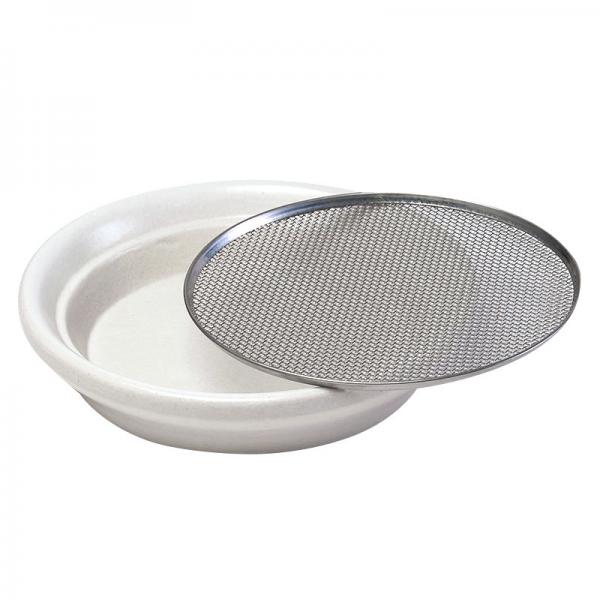 1 Kressesieb (Keramikschale weiß, Edelstahlsieb mit Stahlring Einfassung) 12 cm Durchmesser