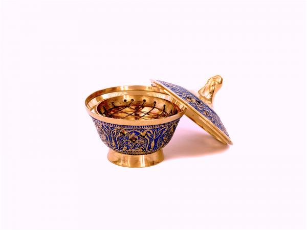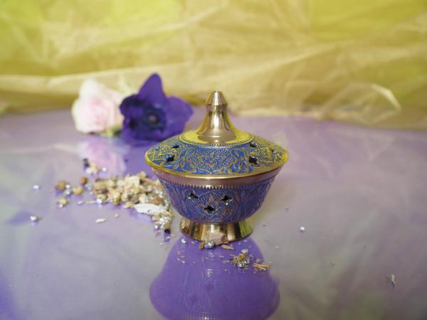 Hübsches Weihrauchgefäß aus Messing, bemalt in blau.